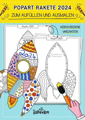 Popart Neujahrsrakete 2024 ???? ???? zum ausmalen ???? / Sketchnotes