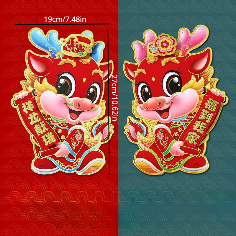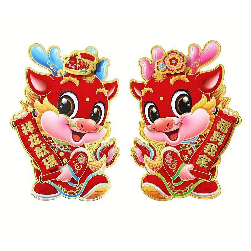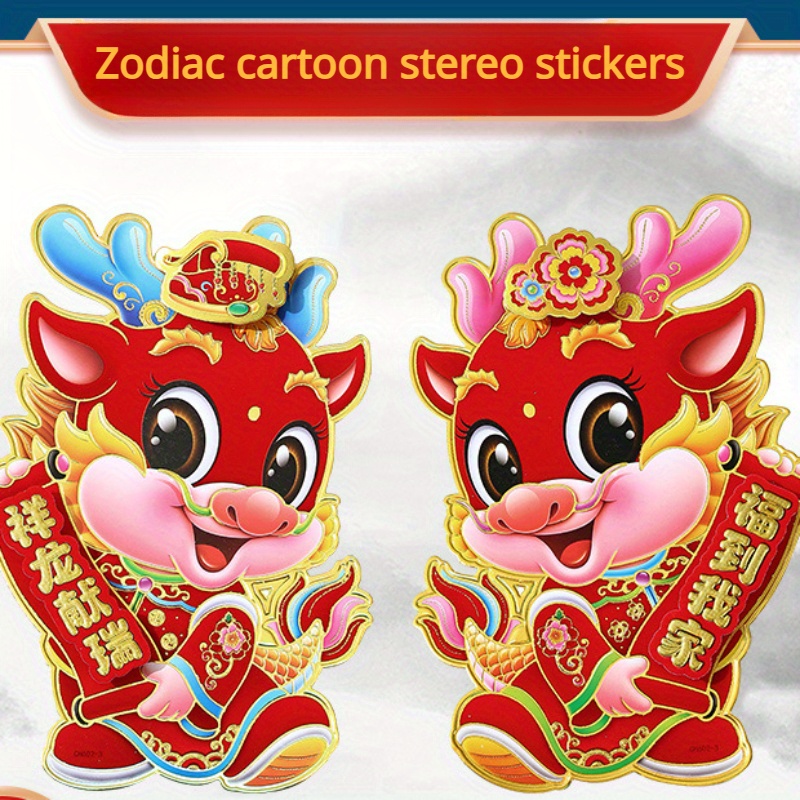 2 Stück, 2024 Jahr Des Drachen Zodiac Aufkleber, Wanddekoration