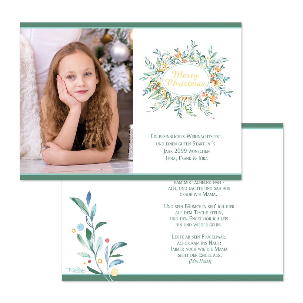verseschmiede weihnachtssprüche 2024 Weihnachtskarte mit floralem Design Watercolor individuell gedruckt: TEXT_3. TEXT_4.
