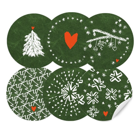 Weihnachtssticker 24 Weihnachtsdeko Aufkleber rund 40 mm Etsy