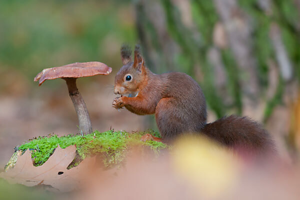 Bildagentur | mauritius images | red squirrels stand with mushrooms